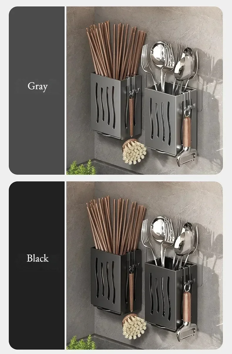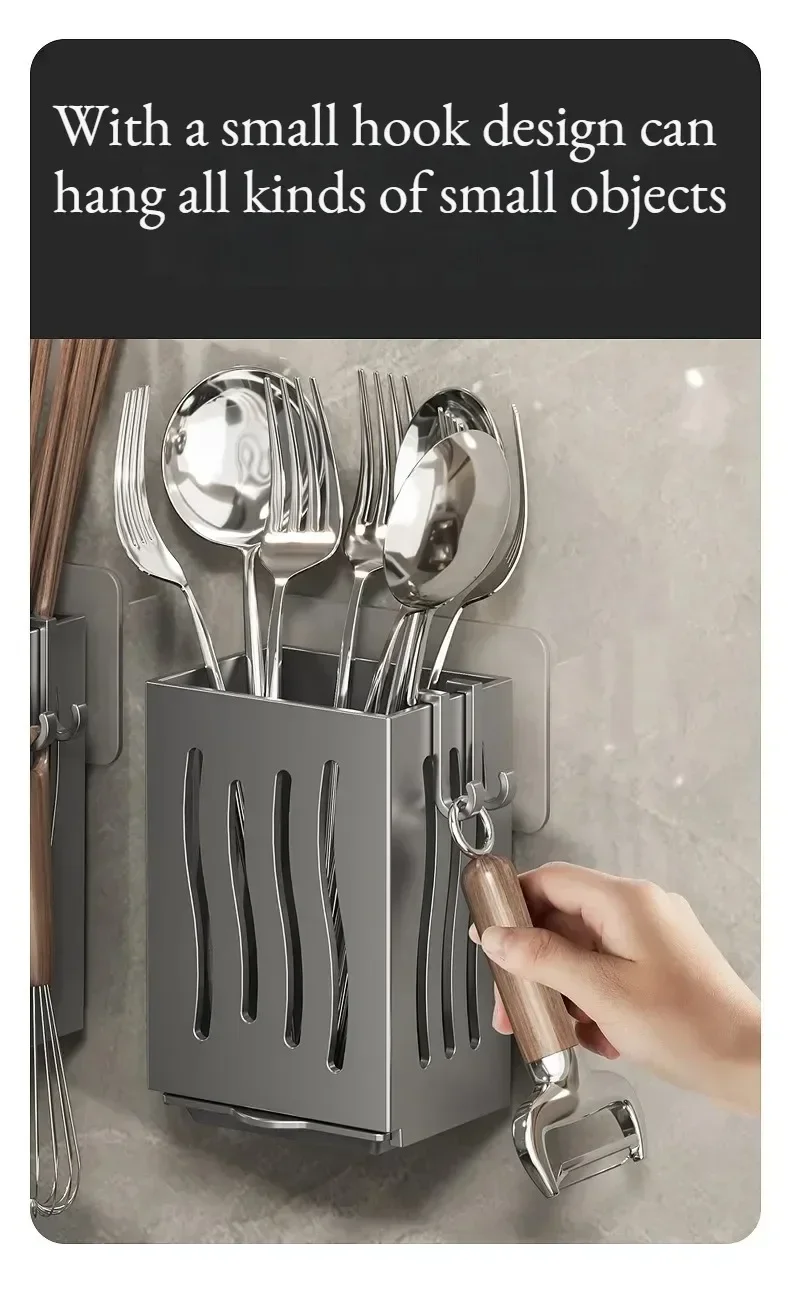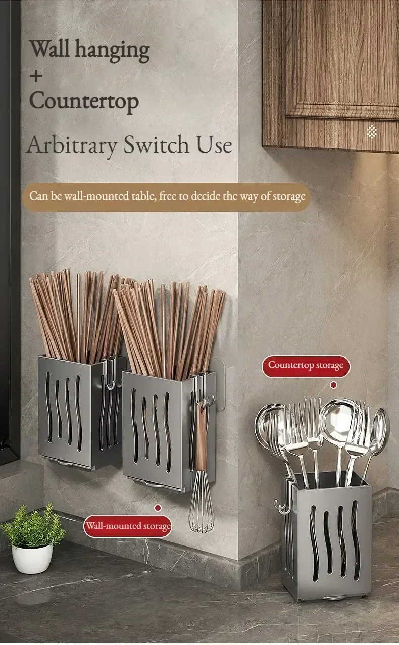 1-Piece Kitchen Utensil Rack-Multifunctional Draining Chopstick Holder,Wall-Mounted or Freestanding Cutlery Storage Box, Plastic