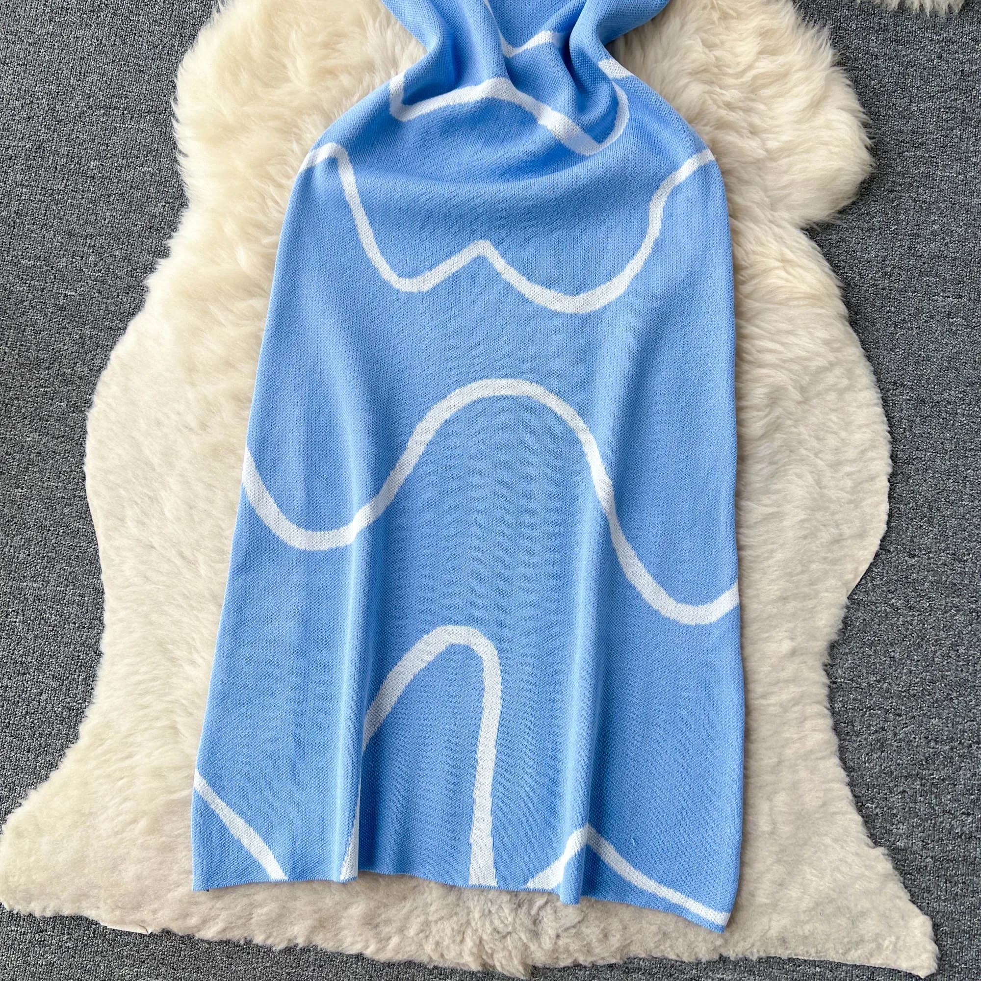 2024 Ladies Knitted Sheath Sundress Sleeveless Hotsweet Print Backless Slim Dress Fashion Elastic Beach Long Dress