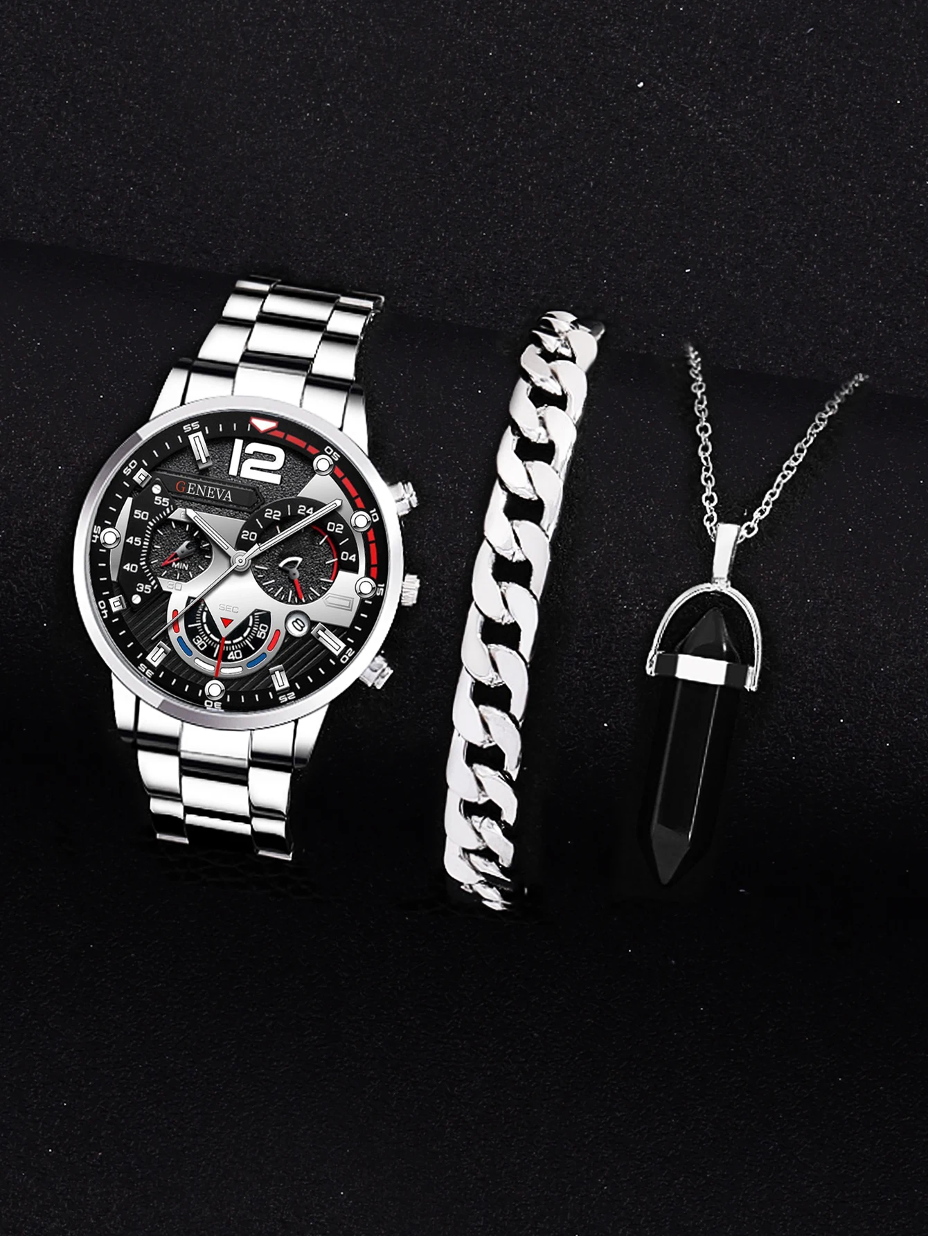 Be the first to review “3PC/2PCS Silver & White Mechanical Design Men's alloy with calendar quartz watch and Cuban bracelet necklace set gift” Cancel reply