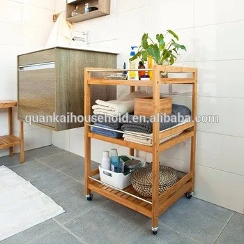 Bamboo Kitchen Storage Serving Trolley Island Cart with Wheels