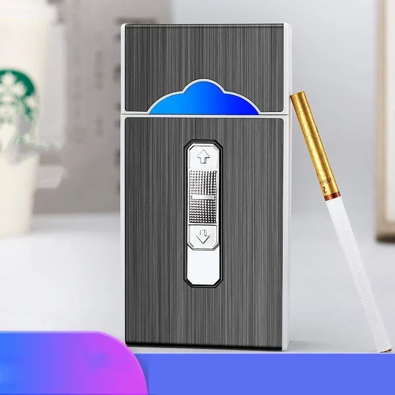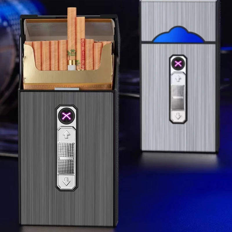 Brand new USB rechargeable cigarette case cigarette lighter, can hold 20 slim cigarettes, cigarette storage box with lighter