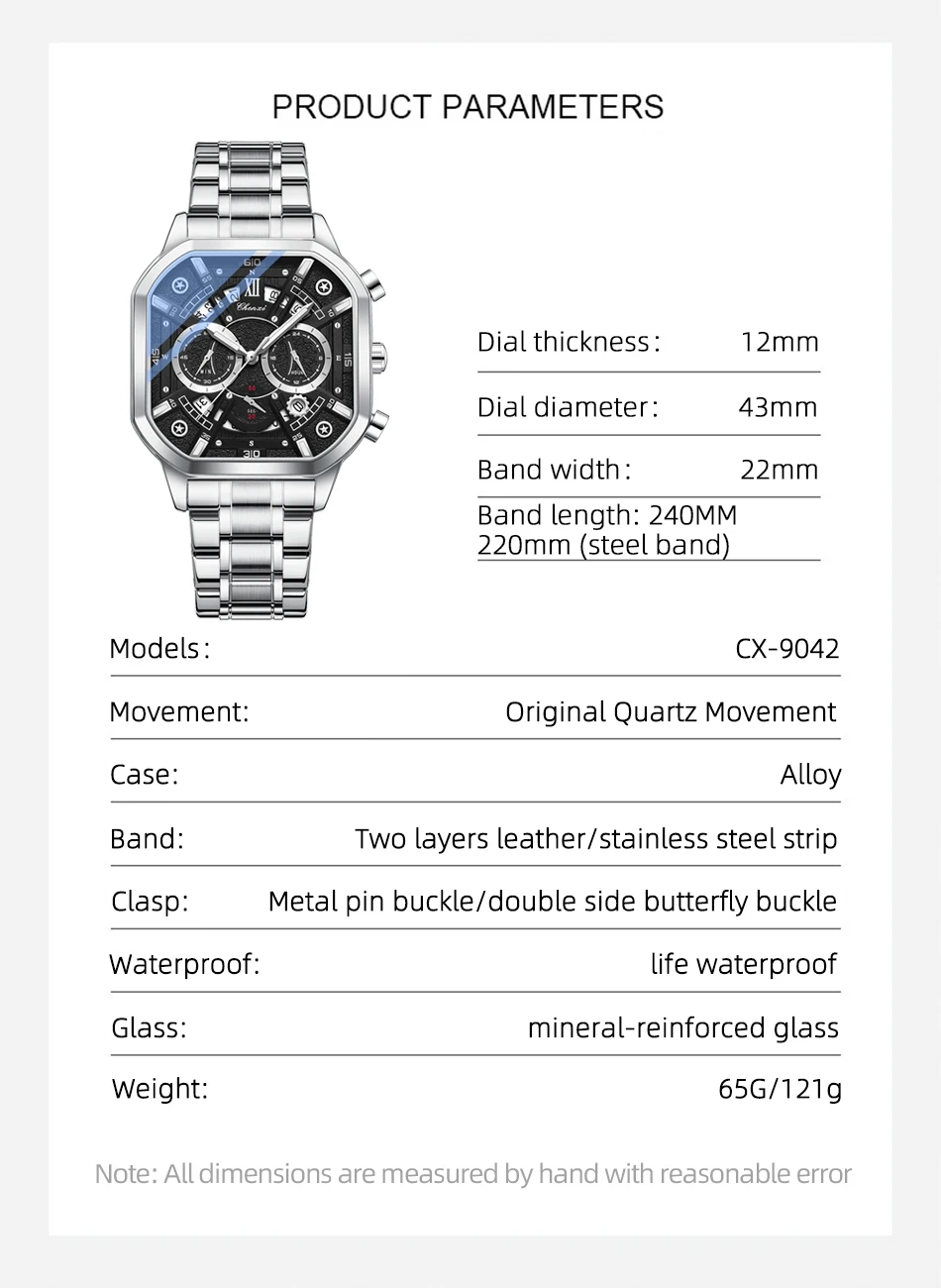 Be the first to review “CHENXI High Quality Multifunctional Business Leisure Watches For Man Square Dial Leather Strap Quartz Wristwatches Clock Gifts” Cancel reply