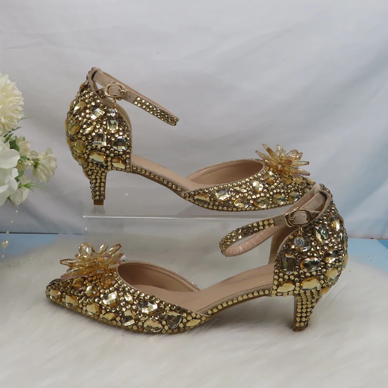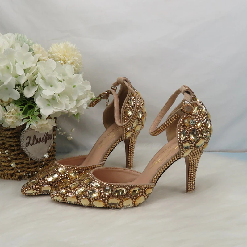 Be the first to review “Customized Champagne Golden crystal women Wedding shoes Rhinestone high heels ankle strap shoes women party dress shoes” Cancel reply