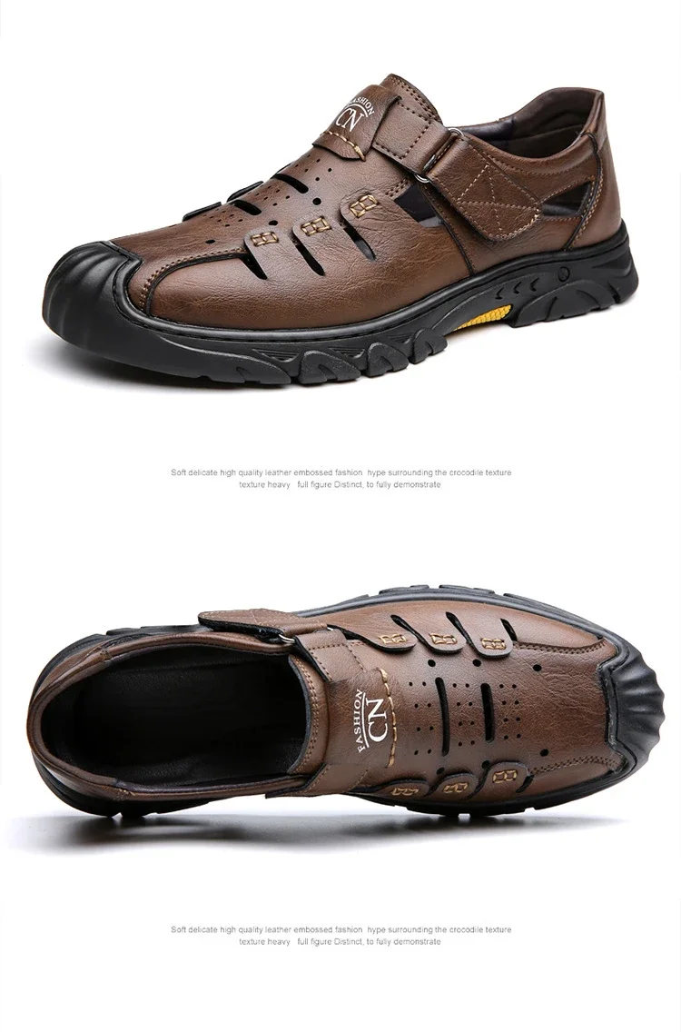 Designer's New Hollowed-out Men's Sandals Fashion Wear-resistant Outdoor Walking Business Soft Leather Summer Man Shoes