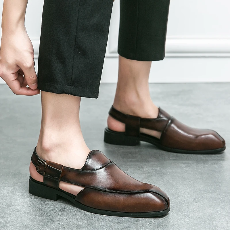 Designer's New Men's Genuine Leather Sandals Trend Men's Seaside Casual Shoes Indoor Outdoor Dual Use Sandal Flat Shoes Summer