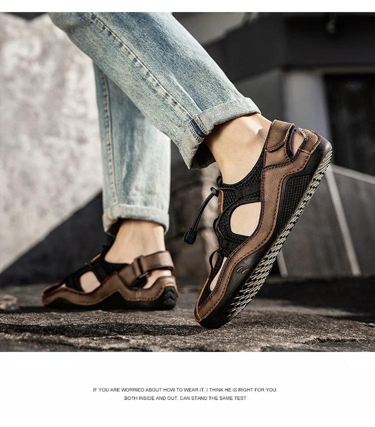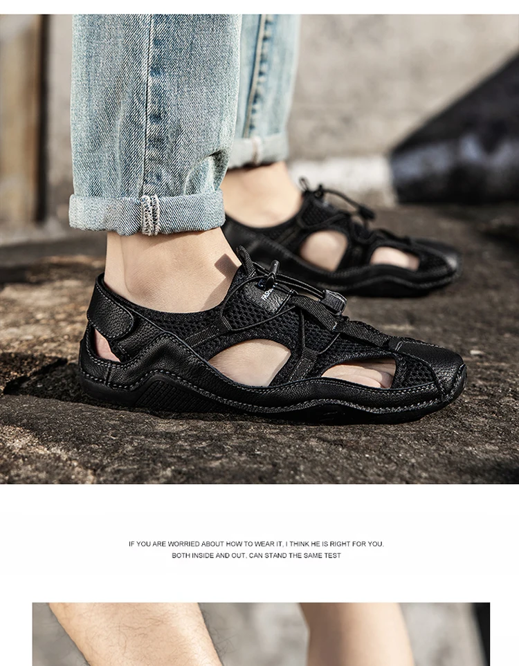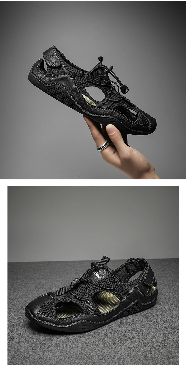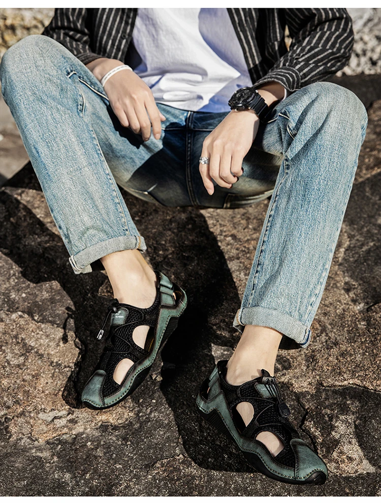 Mens Sandals Genuine Leather Sports Men Outdoor Anti Slip Breathable Lightweight Flat Men Massage Sandals New In Spring Summer