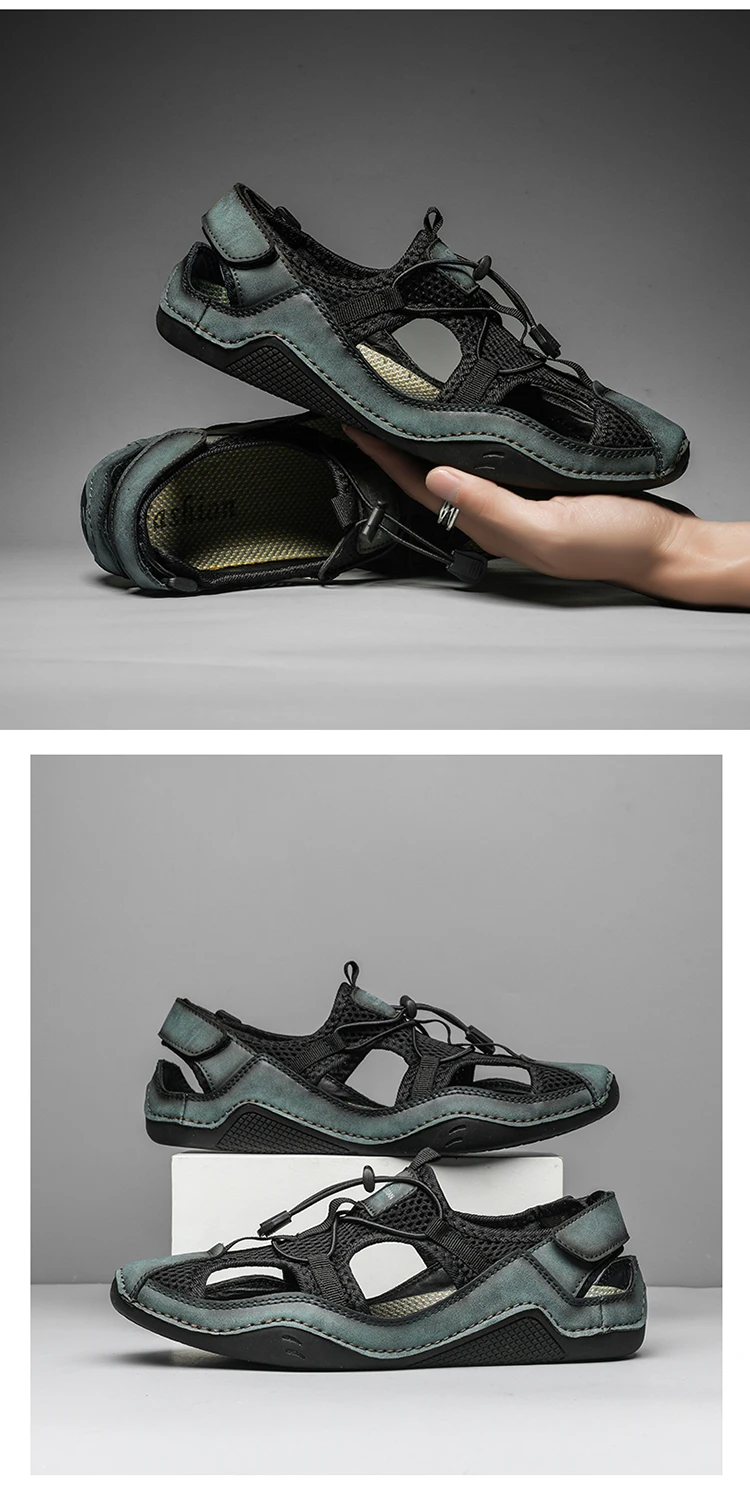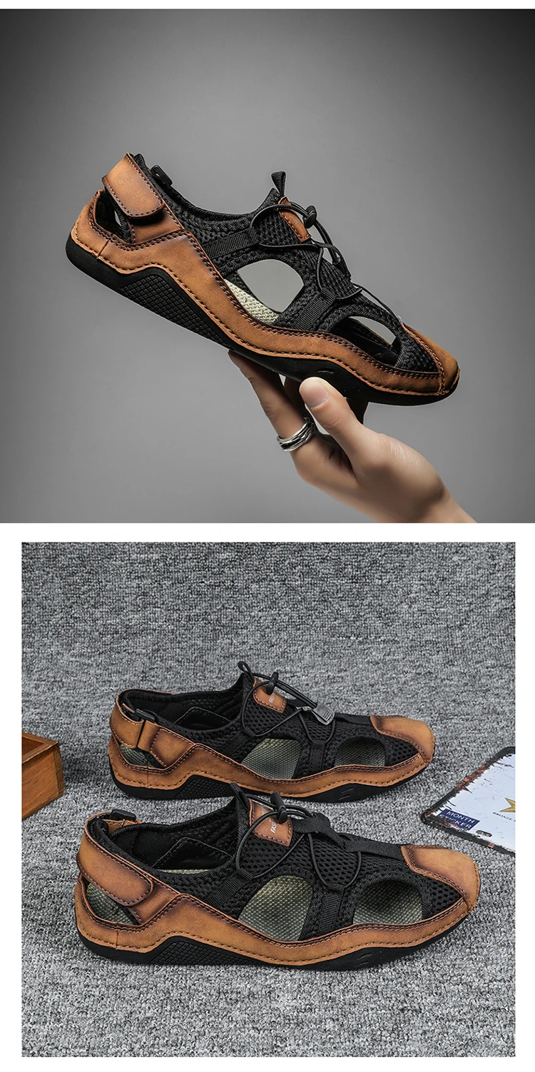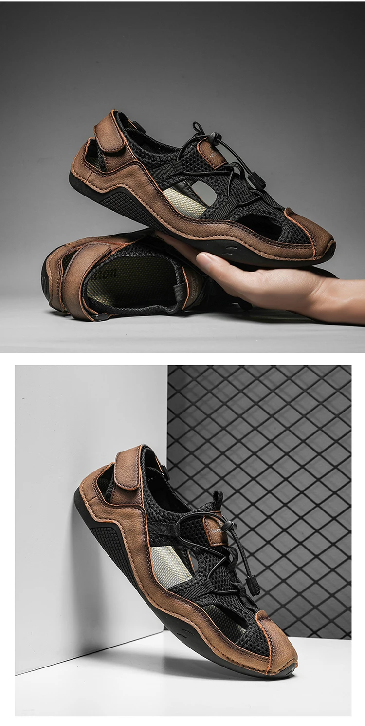 Mens Sandals Genuine Leather Sports Men Outdoor Anti Slip Breathable Lightweight Flat Men Massage Sandals New In Spring Summer