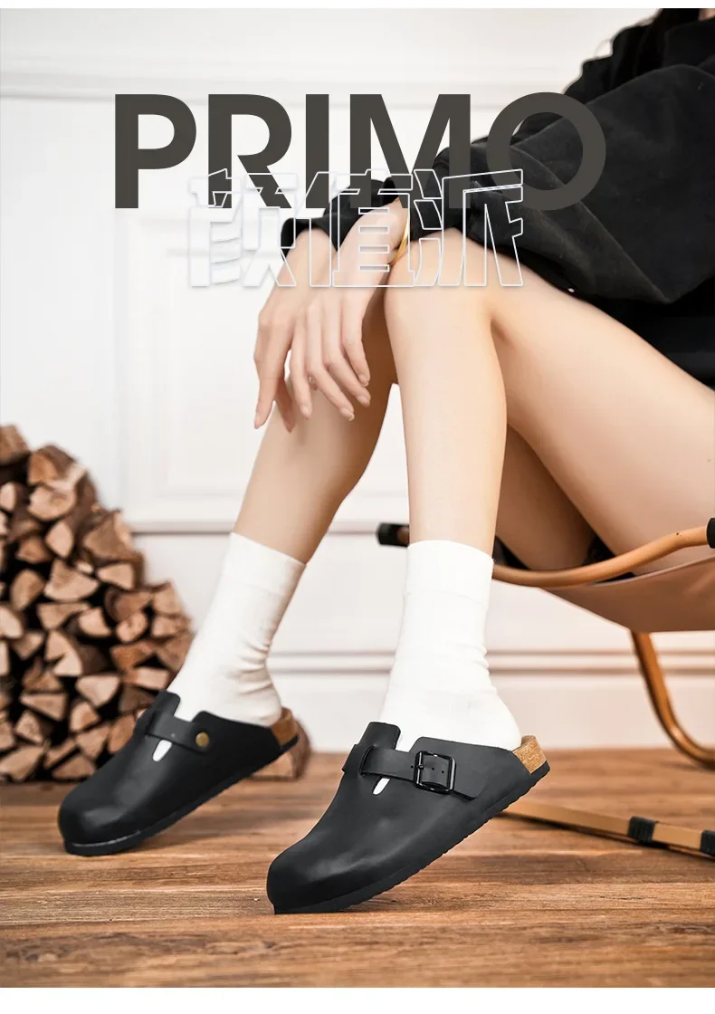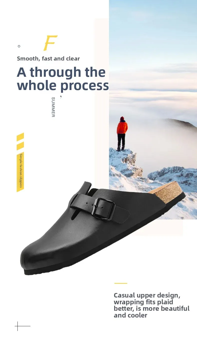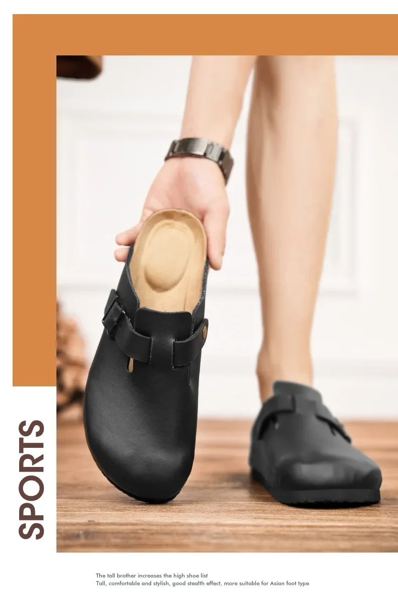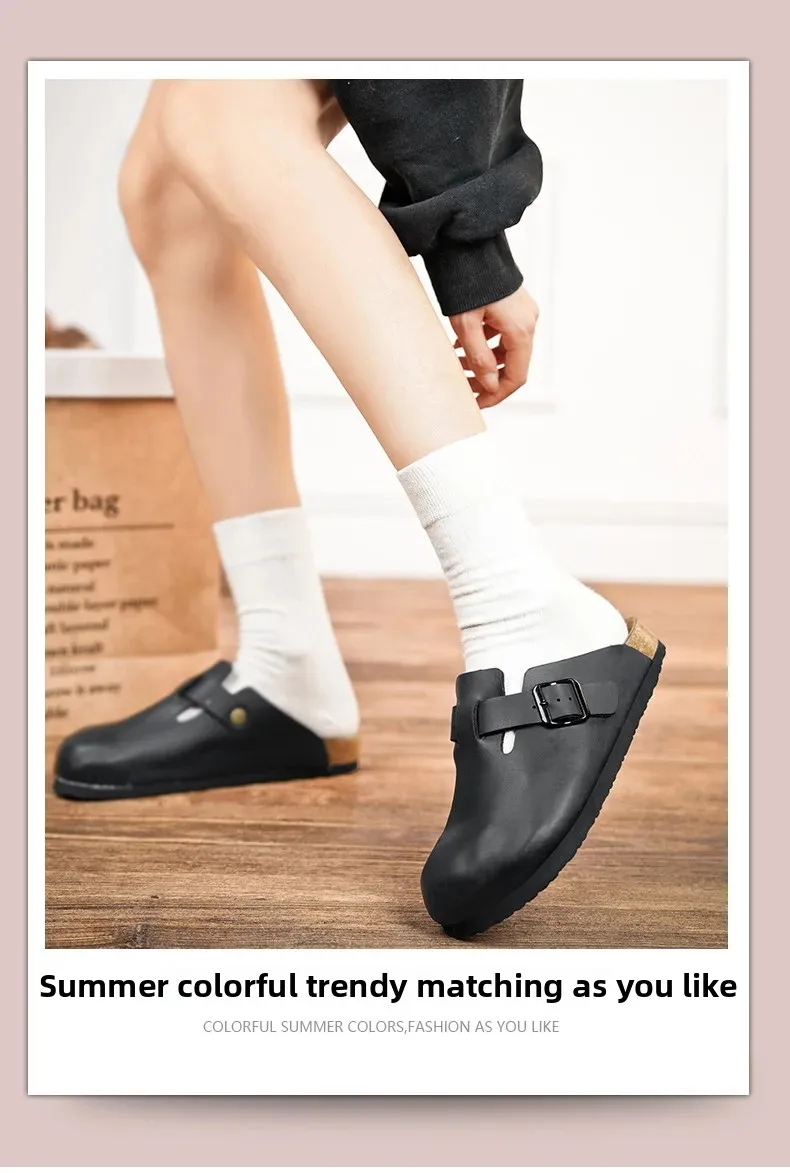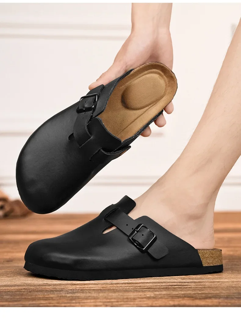 New 2025 Men's Soft Wood Clog Shoes Couple Birkenstyle Cross-Border Best Selling Smooth Leather Headed Slip-On Sandals
