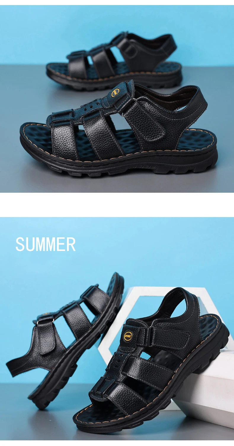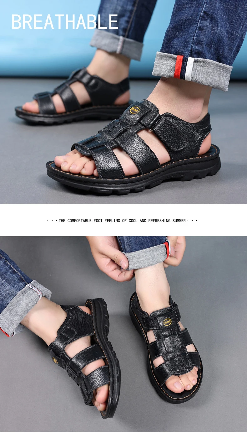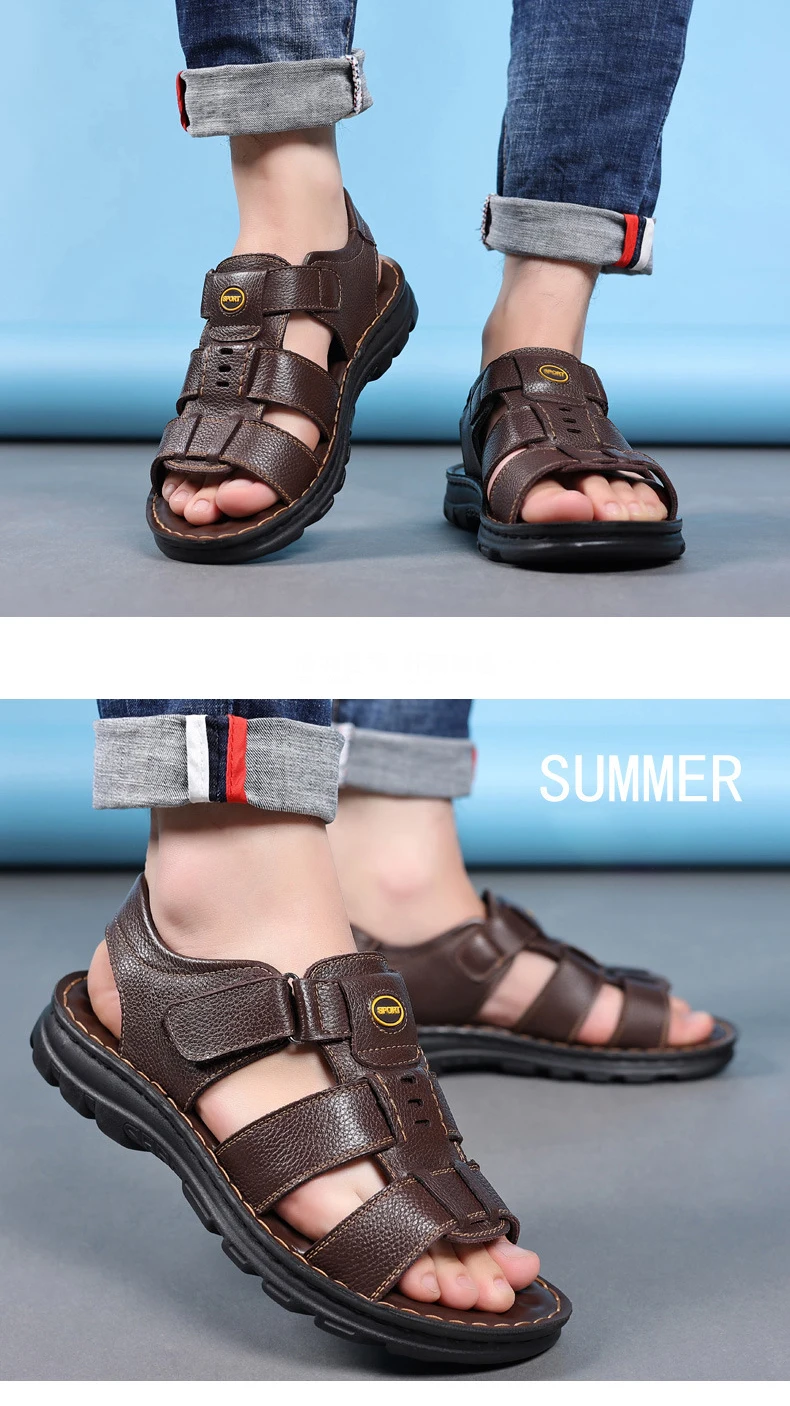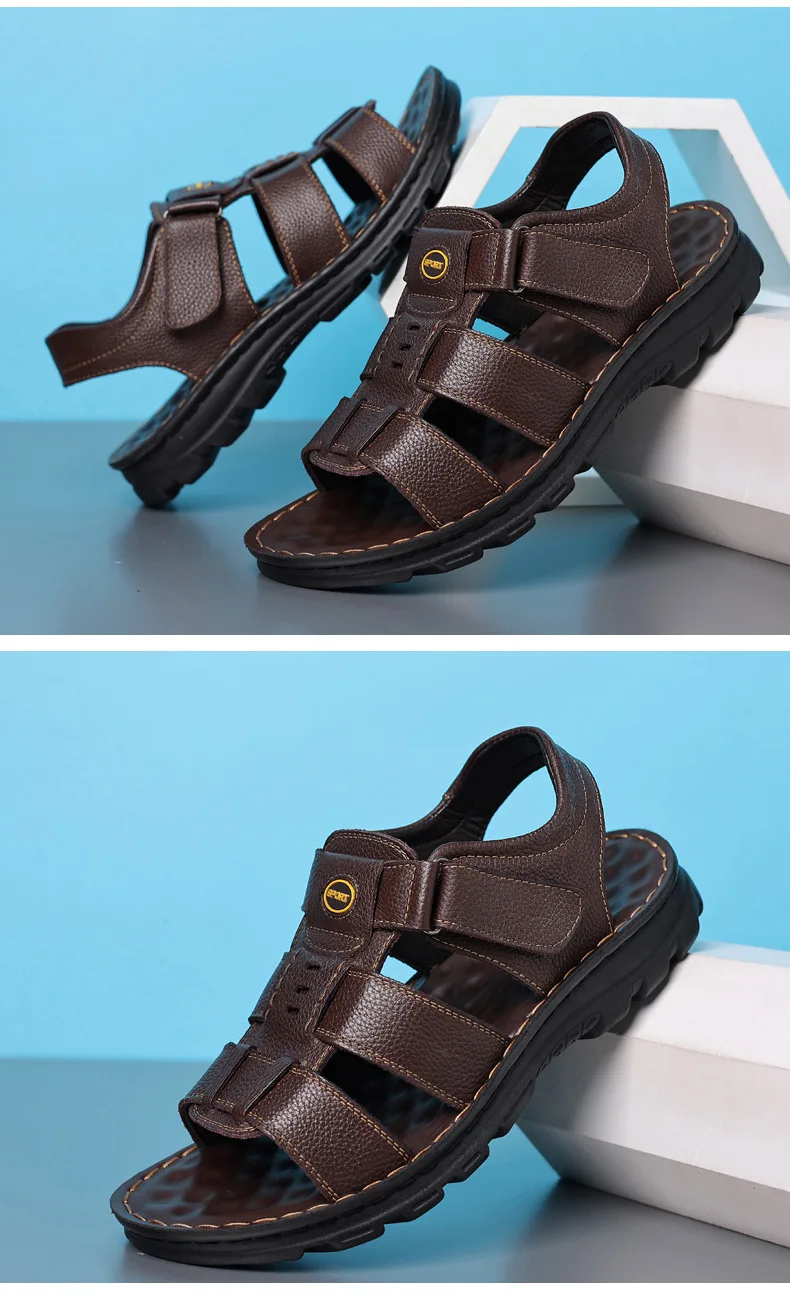 New Men's Sandals Genuine Leather Sandal Outdoor Casual Sandals Non Slip Beach Shoes for Men Driving Big Size