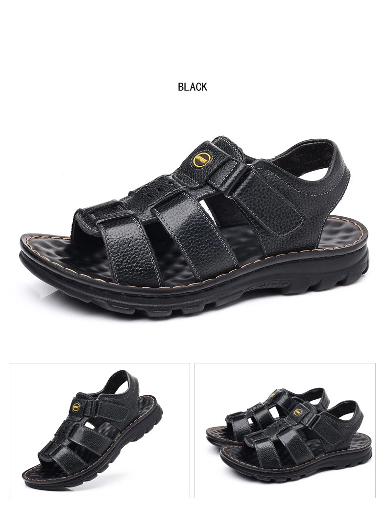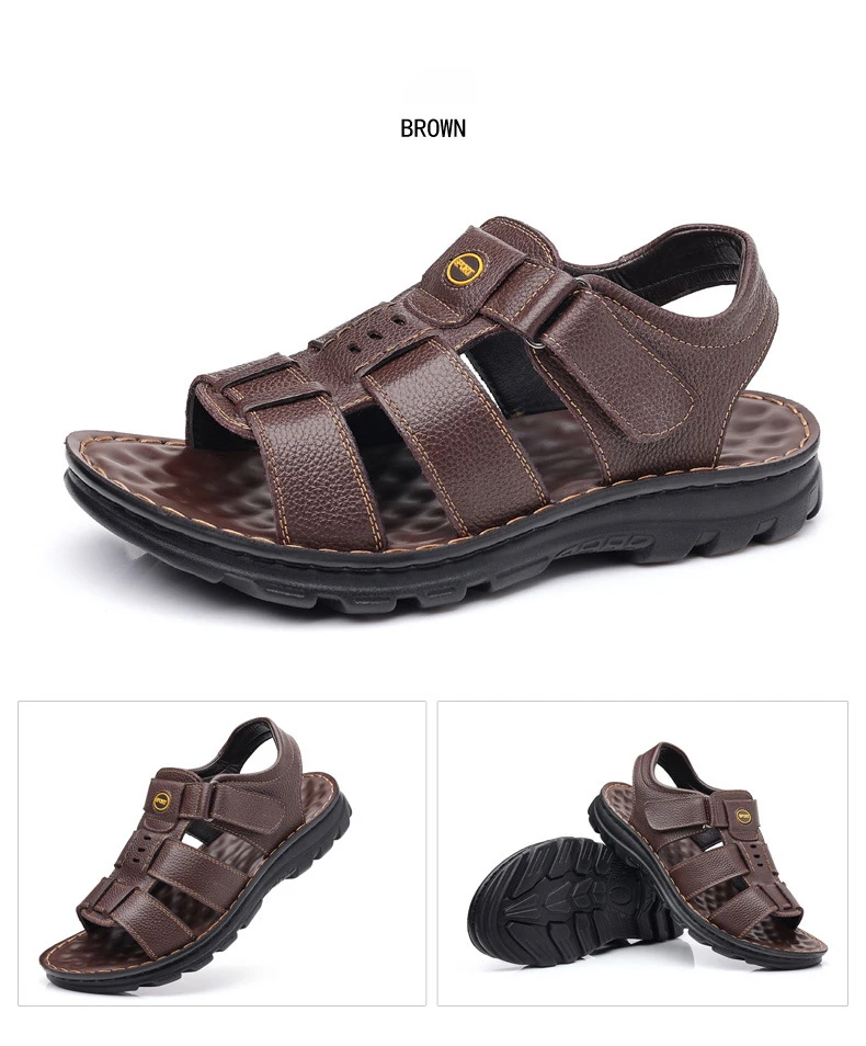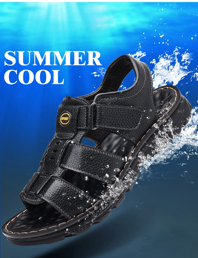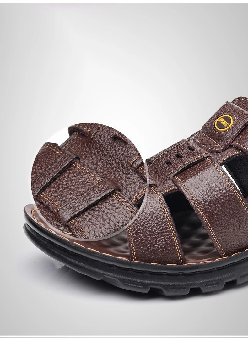 New Men's Sandals Genuine Leather Sandal Outdoor Casual Sandals Non Slip Beach Shoes for Men Driving Big Size
