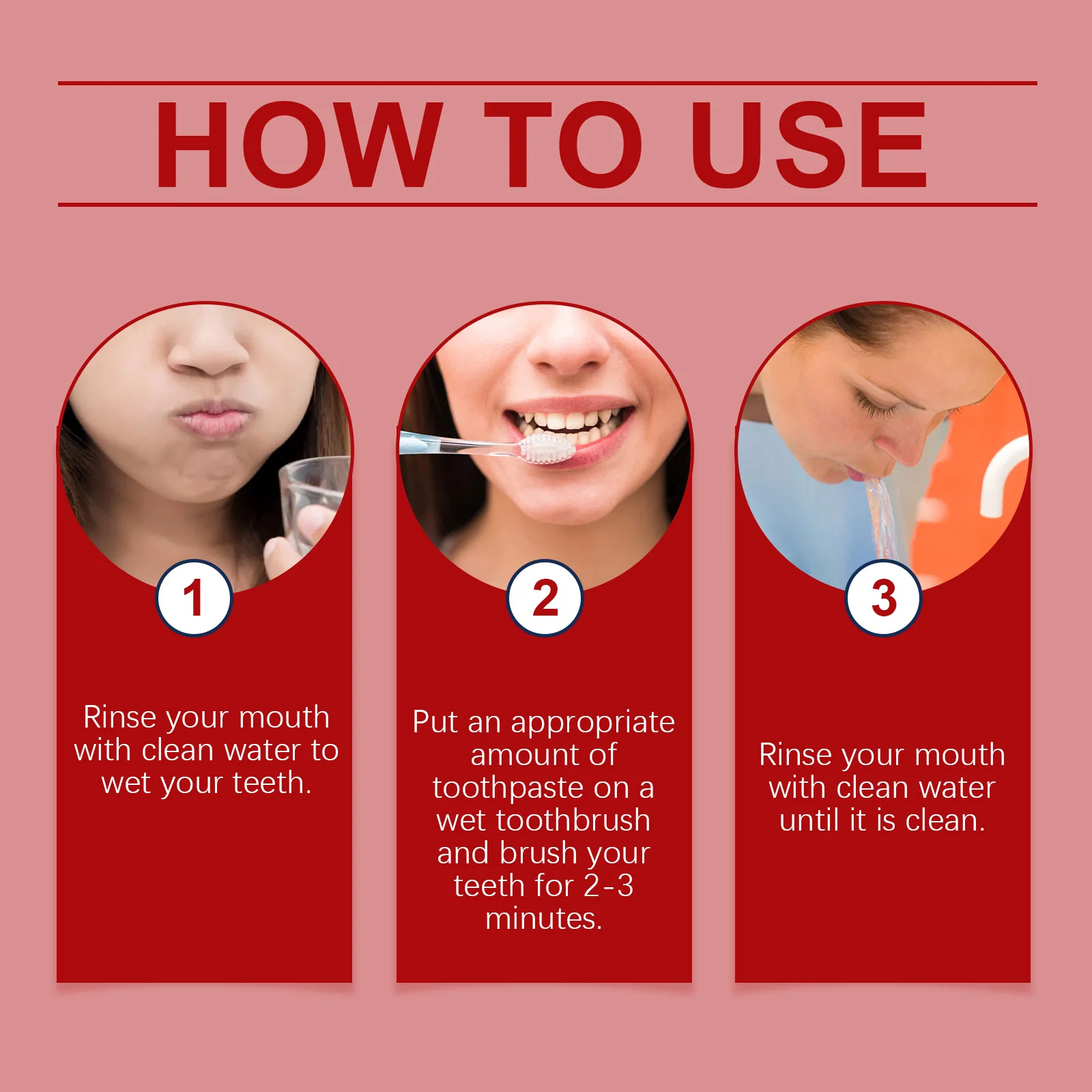 1.The toothpaste can easily clean the dirt between the teeth and whiten your teeth. At the same time, it does not harm your teeth or damage the enamel layer.