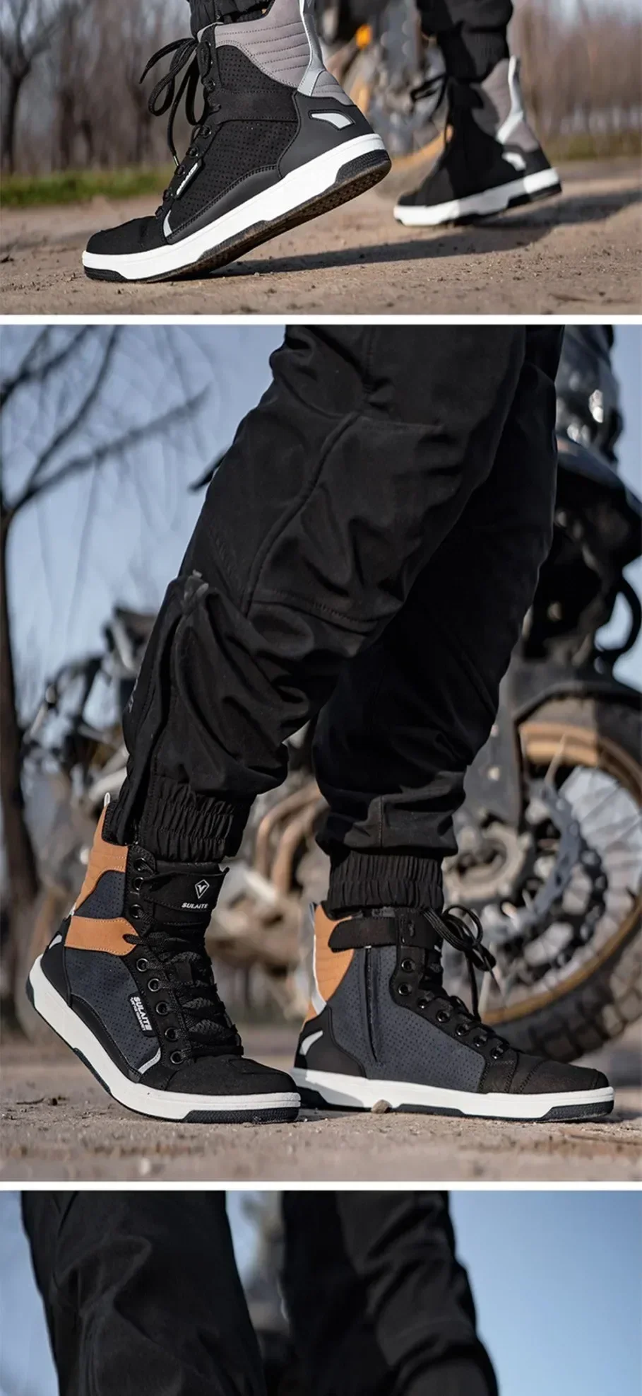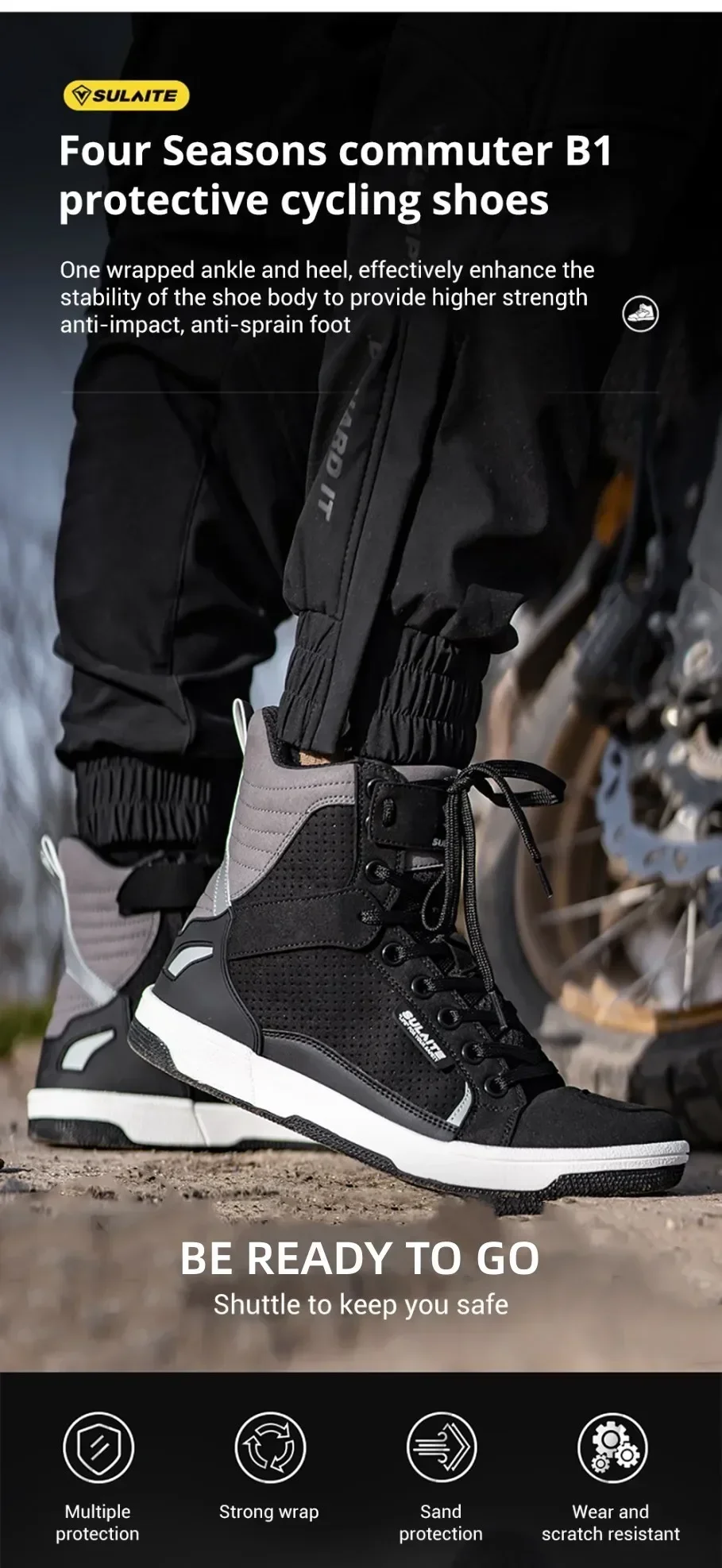 SULAITE Four Season Motorcycle Boots Microfiber Motocross Shoes Anti-slip Biker Boots Causal Motorboats Motorcycle Sneakers