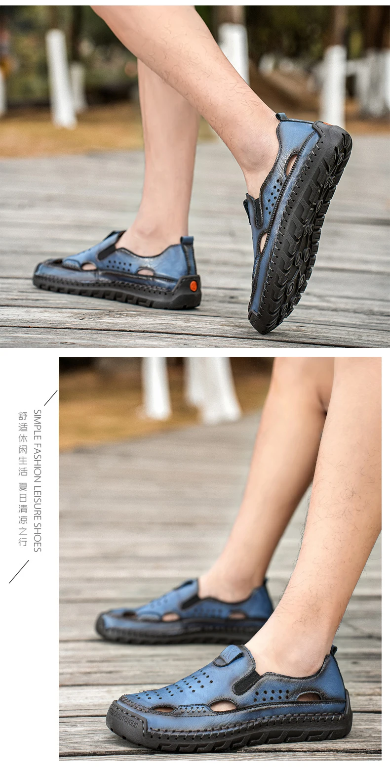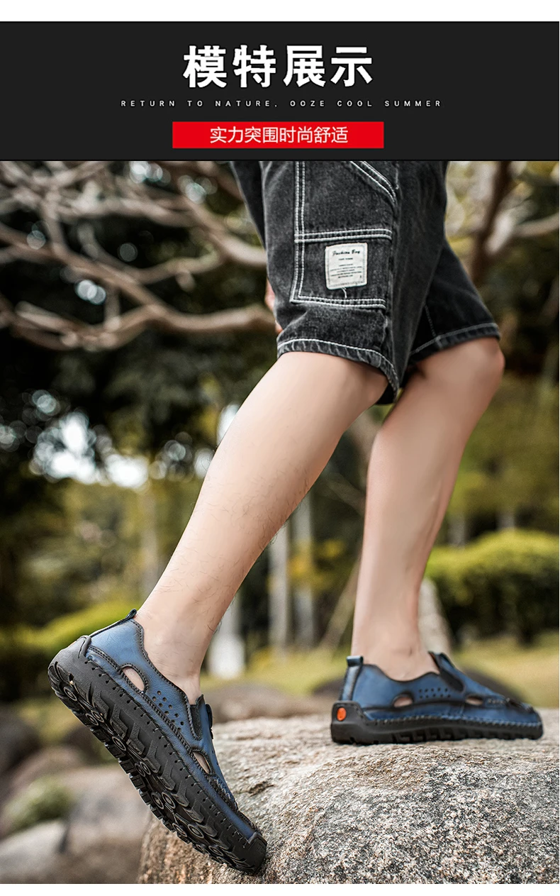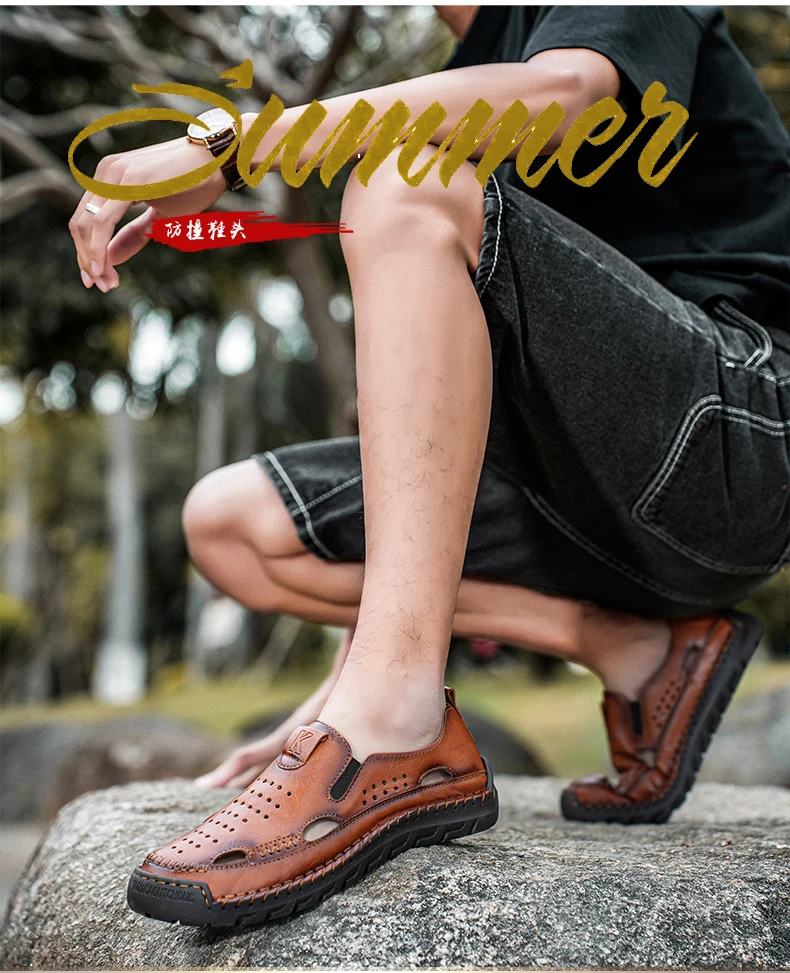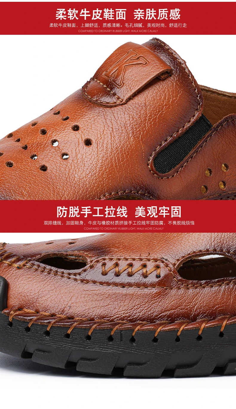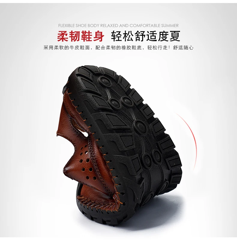 Summer men's sandals comfortable plus size leather handmade sandals non-slip and wearable outdoor casual driving sandals