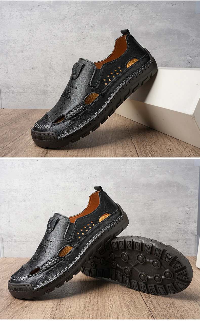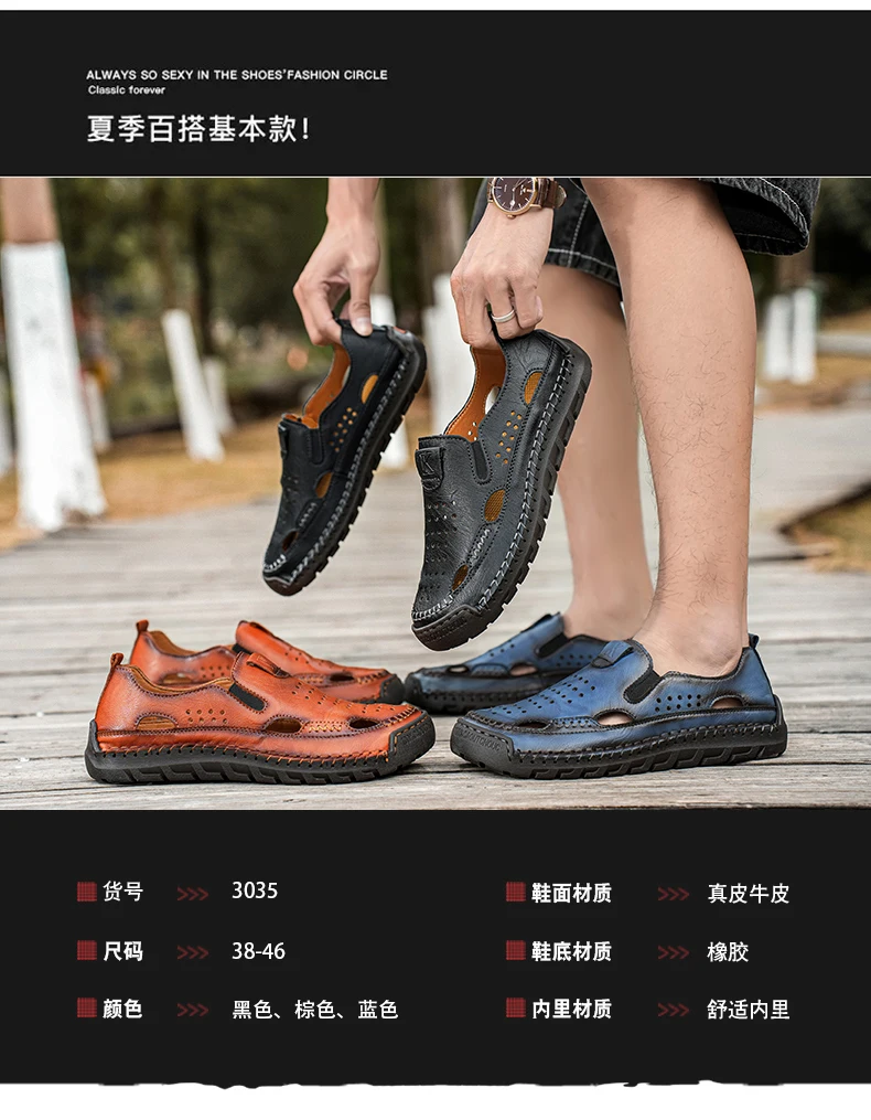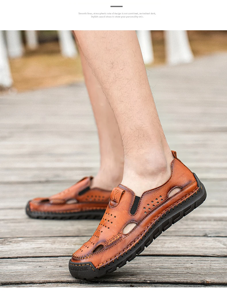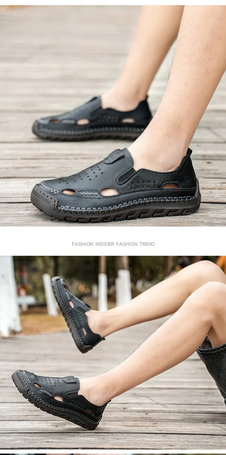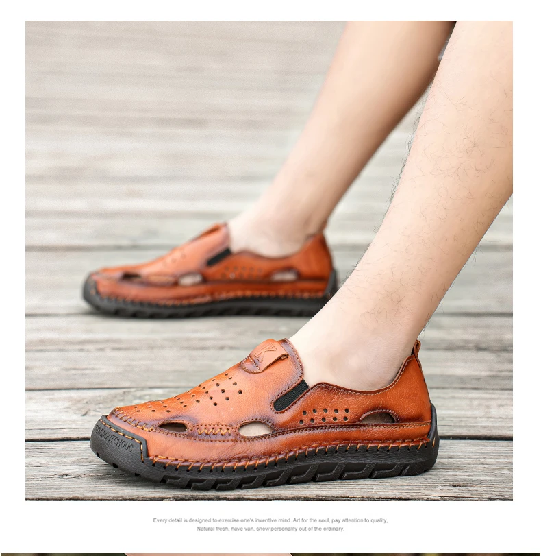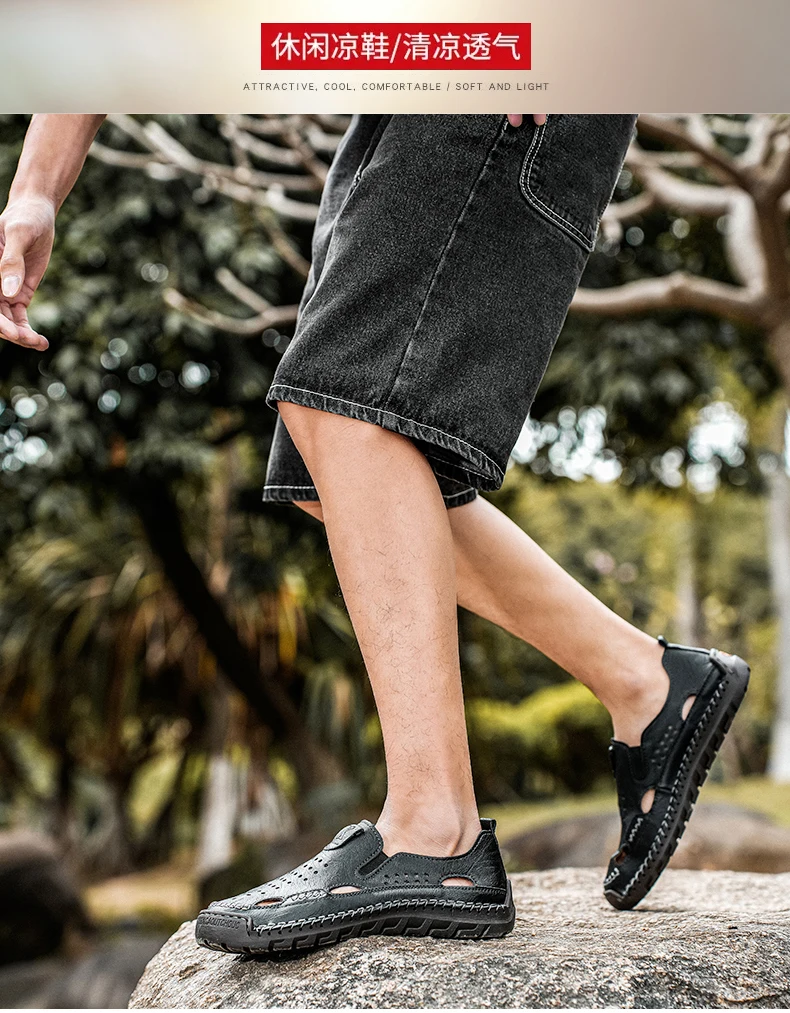Summer men's sandals comfortable plus size leather handmade sandals non-slip and wearable outdoor casual driving sandals