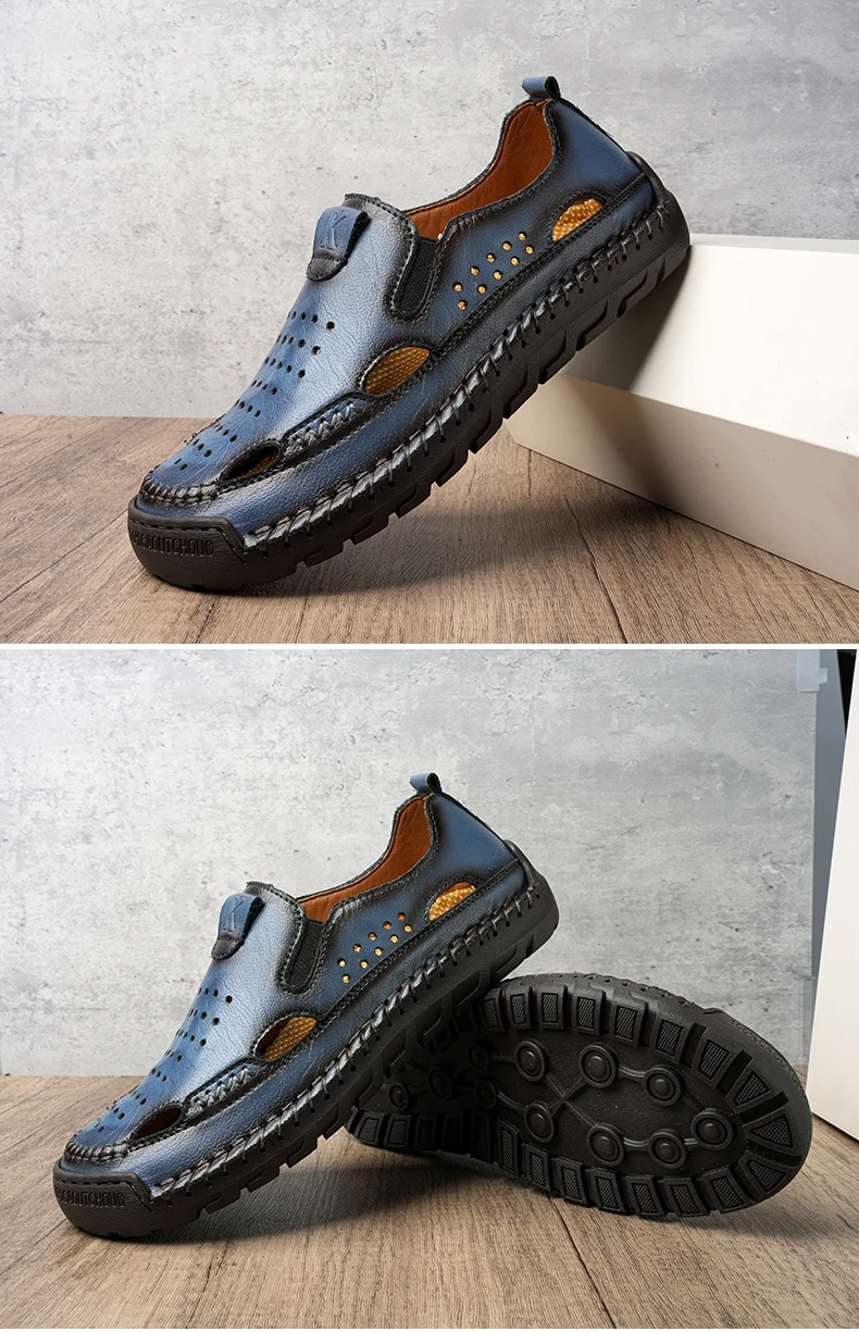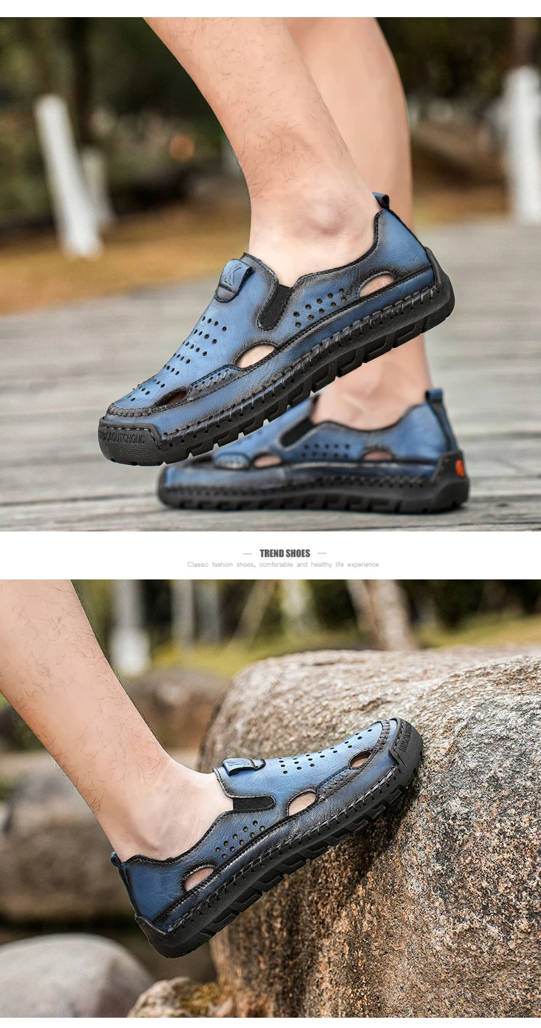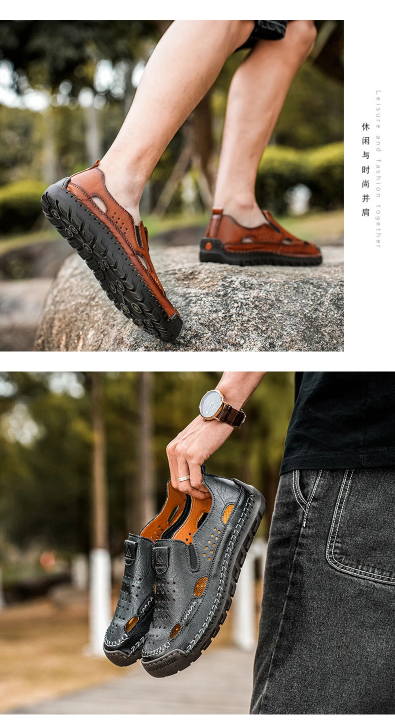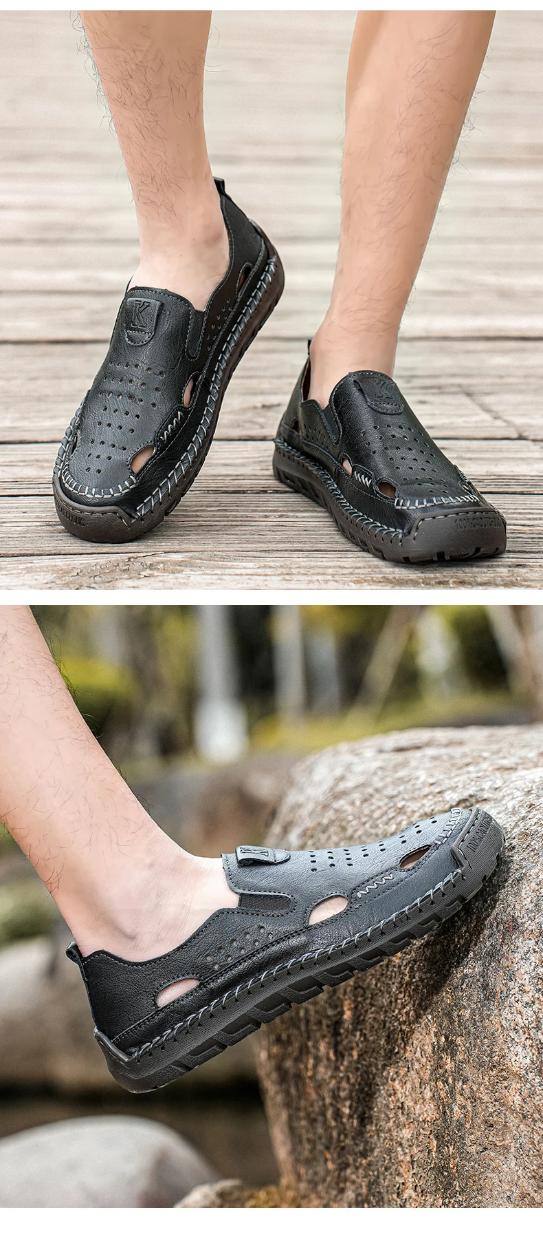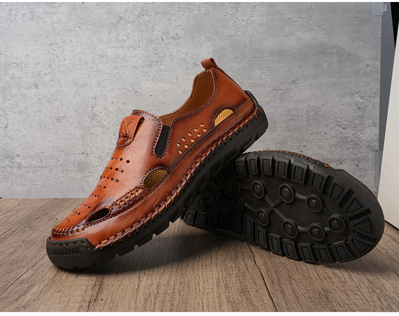 Summer men's sandals comfortable plus size leather handmade sandals non-slip and wearable outdoor casual driving sandals