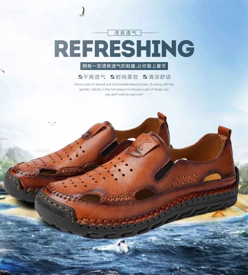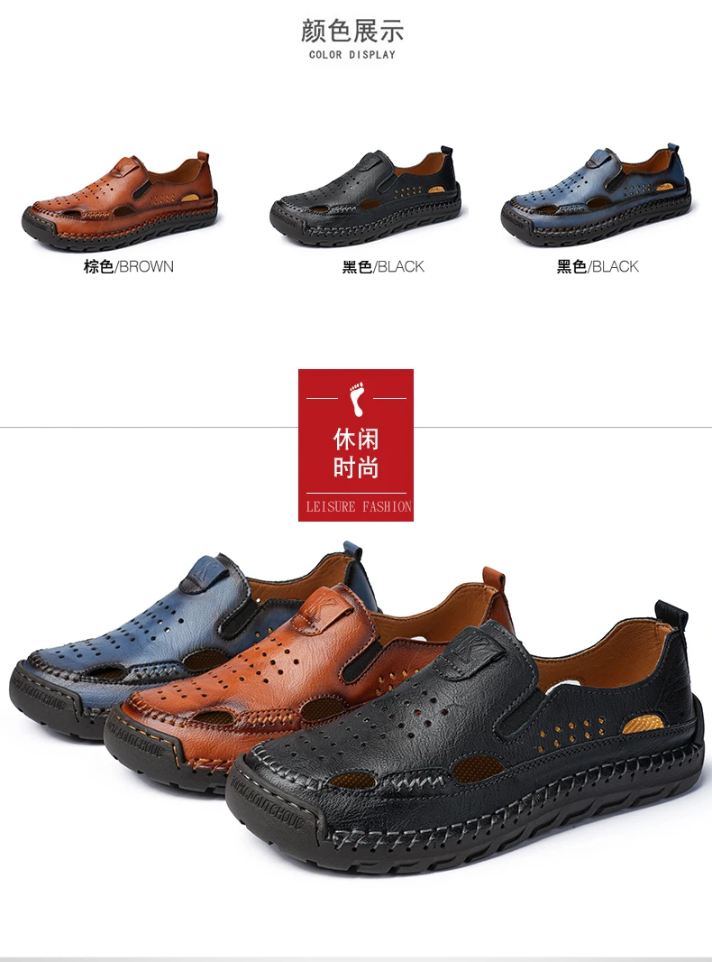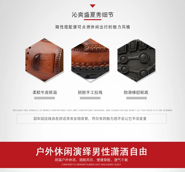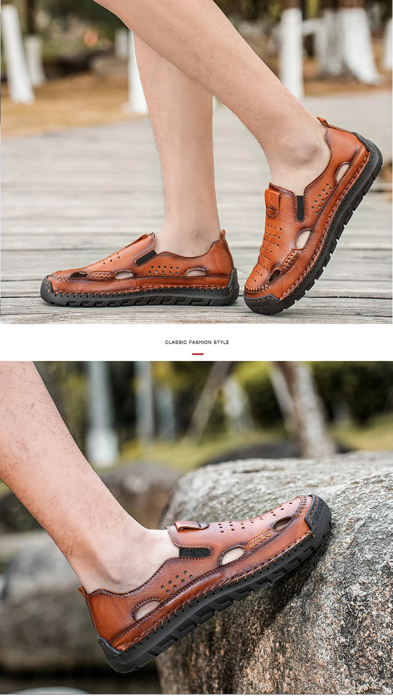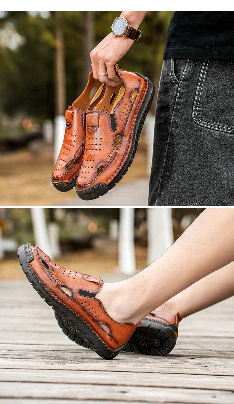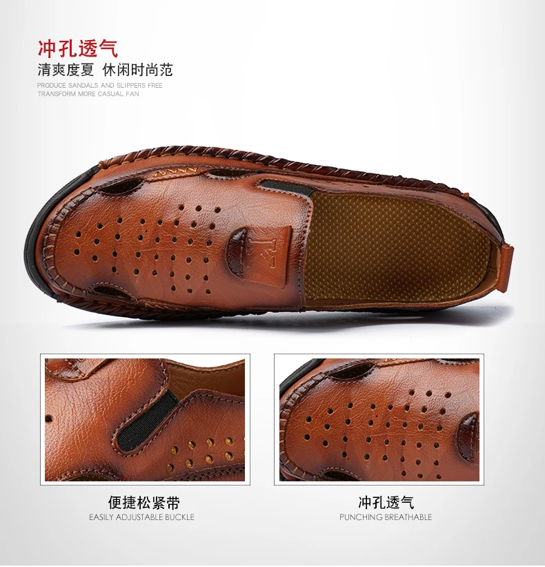 Summer men's sandals comfortable plus size leather handmade sandals non-slip and wearable outdoor casual driving sandals